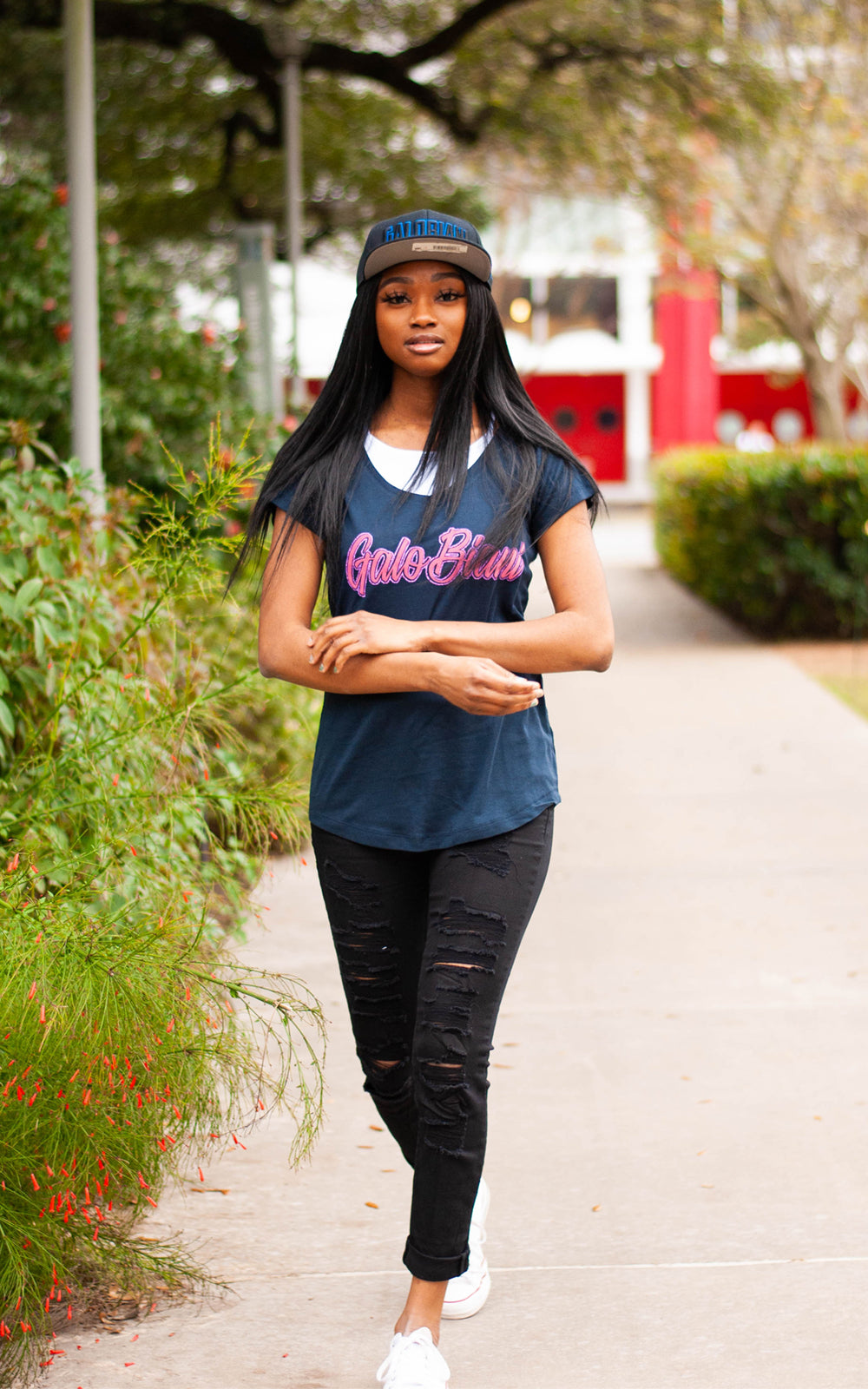 The Tay Short sleeve V-Neck COLOR- NAVY/PINK/LIGHT PURPLE GLITTER OUTLINE